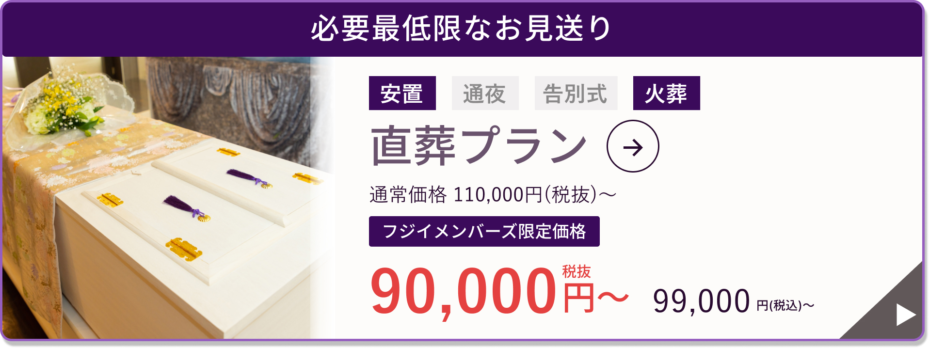 火葬のみでお見送りする、必要な内容を厳選したプランです。